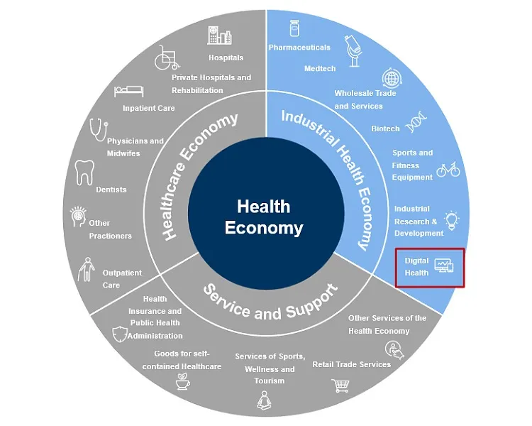 Abbildung 1: Einordnung der digitalen Gesundheitswirtschaft als Teilbereich der industriellen Gesundheitswirtschaft innerhalb der Gesundheitswirtschaft.