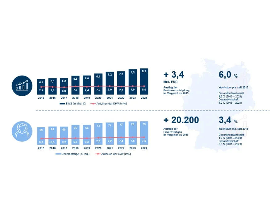 Quelle: Bundesministerium für Wirtschaft und Energie (BMWE) (2025): Gesundheitswirtschaft – Fakten & Zahlen. Ergebnisse der Gesundheitswirtschaftlichen Gesamtrechnung.